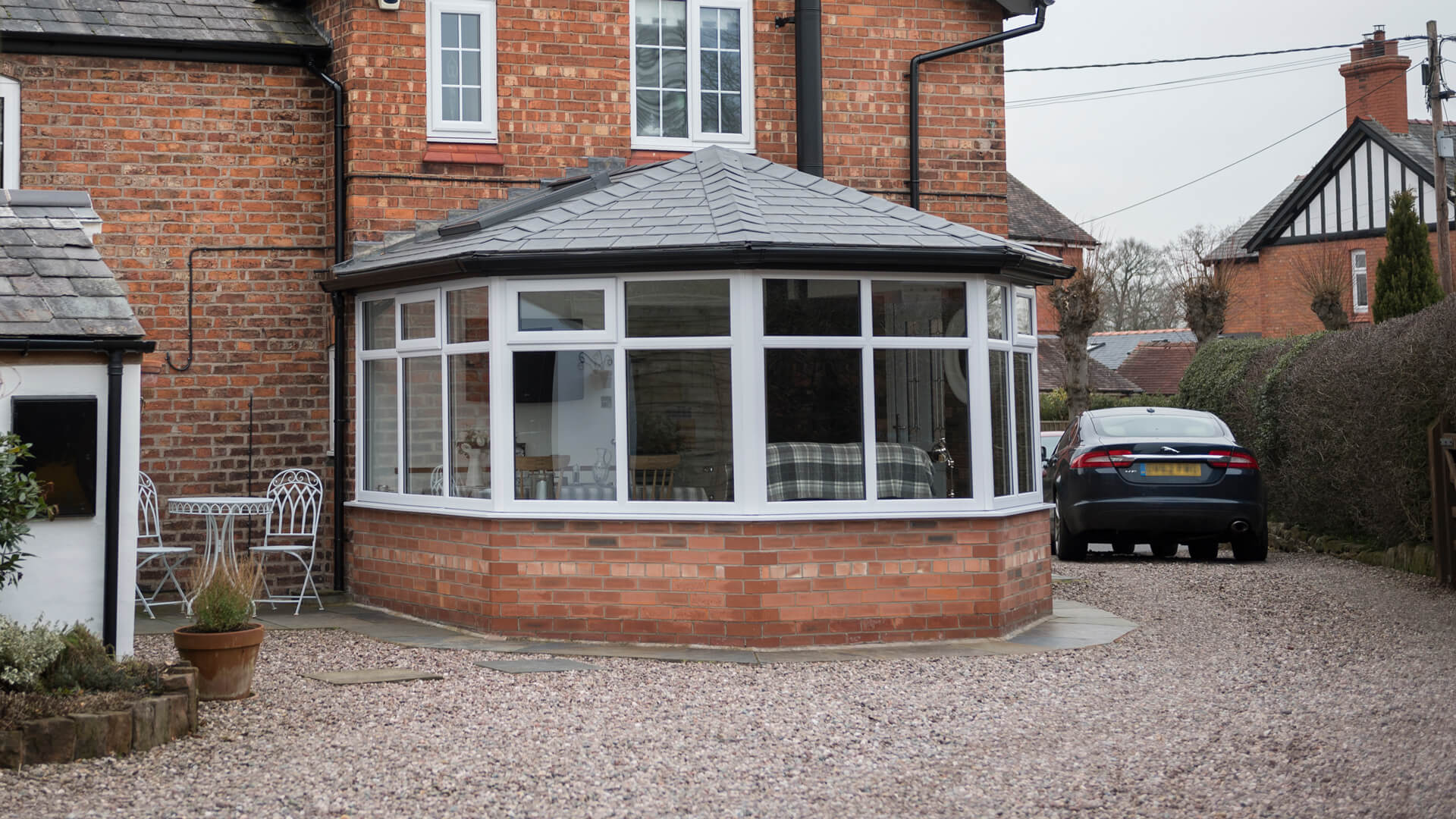 We’re often approached by conservatory owners keen to know how they can make their old extension useable in all weathers. The solution is simple – replace the existing roof for a thermally insulated roof. That’s what we did here, but only after we had put in brand new white UPVC windows to make absolutely sure that it could cope with the weight of the new replacement tiled roof. When viewing the conservatory from the exterior you’re left scratching your head in disbelief as it’s hard to comprehend that the conservatory, which serves as a dining come lounge area, isn’t brand new.